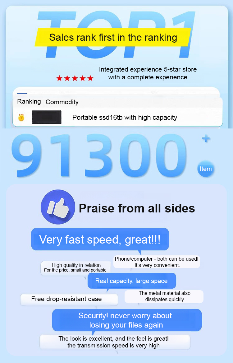 ✨ 16TB industrial-grade capacity, supporting USB 3.2 Gen2 interface, with a measured transfer rate of 905MB/s, capable of transferring a high-definition movie in 2 seconds.